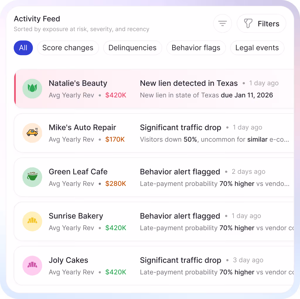 Merclex gives you continuous visibility into customer credit risk and accounts receivable - without digging through reports or waiting for invoices to go overdue.